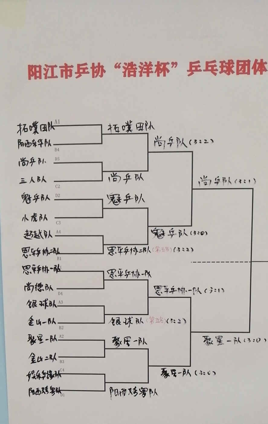 第五名:銀球隊(duì)、恩平乒協(xié)二隊(duì)