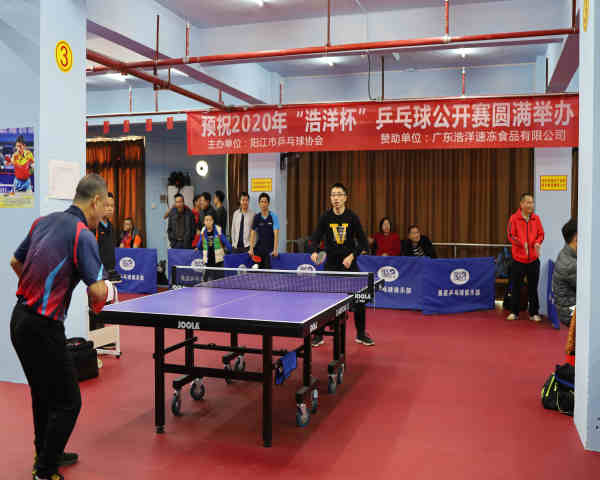 晴空萬(wàn)里、風(fēng)和日麗,2020 年 12月 19 日上午 09:00時(shí),浩洋速凍食品贊助的陽(yáng)江市乒協(xié)2020“廣東浩洋杯” 乒乓球公開(kāi)賽在陽(yáng)江聚星乒乓球俱樂(lè)部拉開(kāi)帷幕。開(kāi)幕式由兵協(xié)副秘書長(zhǎng)郭志強(qiáng)主持,參賽選手由24支球隊(duì)組成,球隊(duì)分別來(lái)自陽(yáng)西、陽(yáng)春、陽(yáng)東、恩平、江門和市區(qū)內(nèi)等高手。
