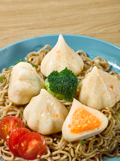 海鮮味的“灌湯包”,外皮由魚漿做成,白嫩Q彈,內(nèi)餡是鮮脆的魚籽,咬下一口,湯汁溢出,味道鮮美,嚼起來魚籽一個個爆破發(fā)出“咯吱咯吱”的脆響,感覺很奇妙。